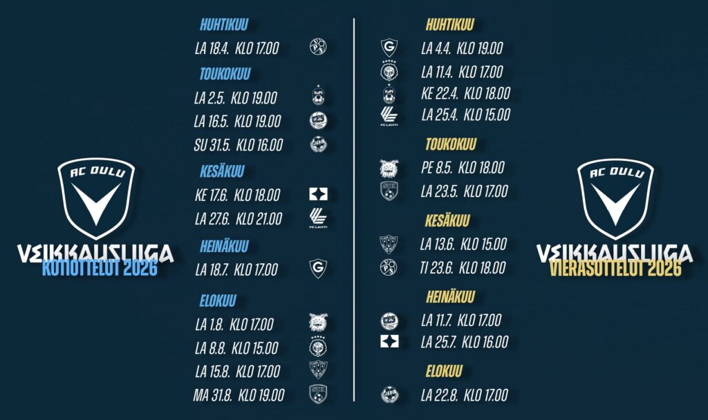 AC Oulu iskee Veikkausliiga-avaukseen Helsingissä.