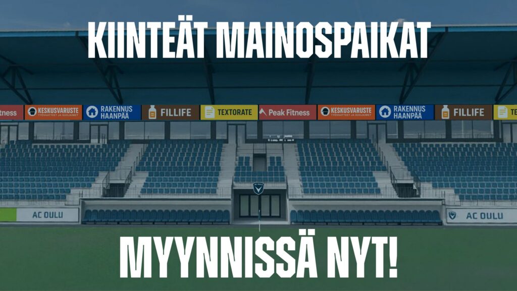 – Uudella stadionilla on paljon hyviä mainospaikkoja saatavilla. Näkyvyyselementit myydään siinä järjestyksessä, kun pääsemme kiinnostuneiden tahojen kanssa sopimukseen eli tässä ensivaiheessa näkyvyyselementtejä ostavat kumppanit pääsevät valitsemaan sopivimmat vaihtoehdot juuri omaan tarpeeseensa, taustoittaa AC Oulun toimitusjohtaja Jani Kotikangas myyntiprosessin alkumetrejä.